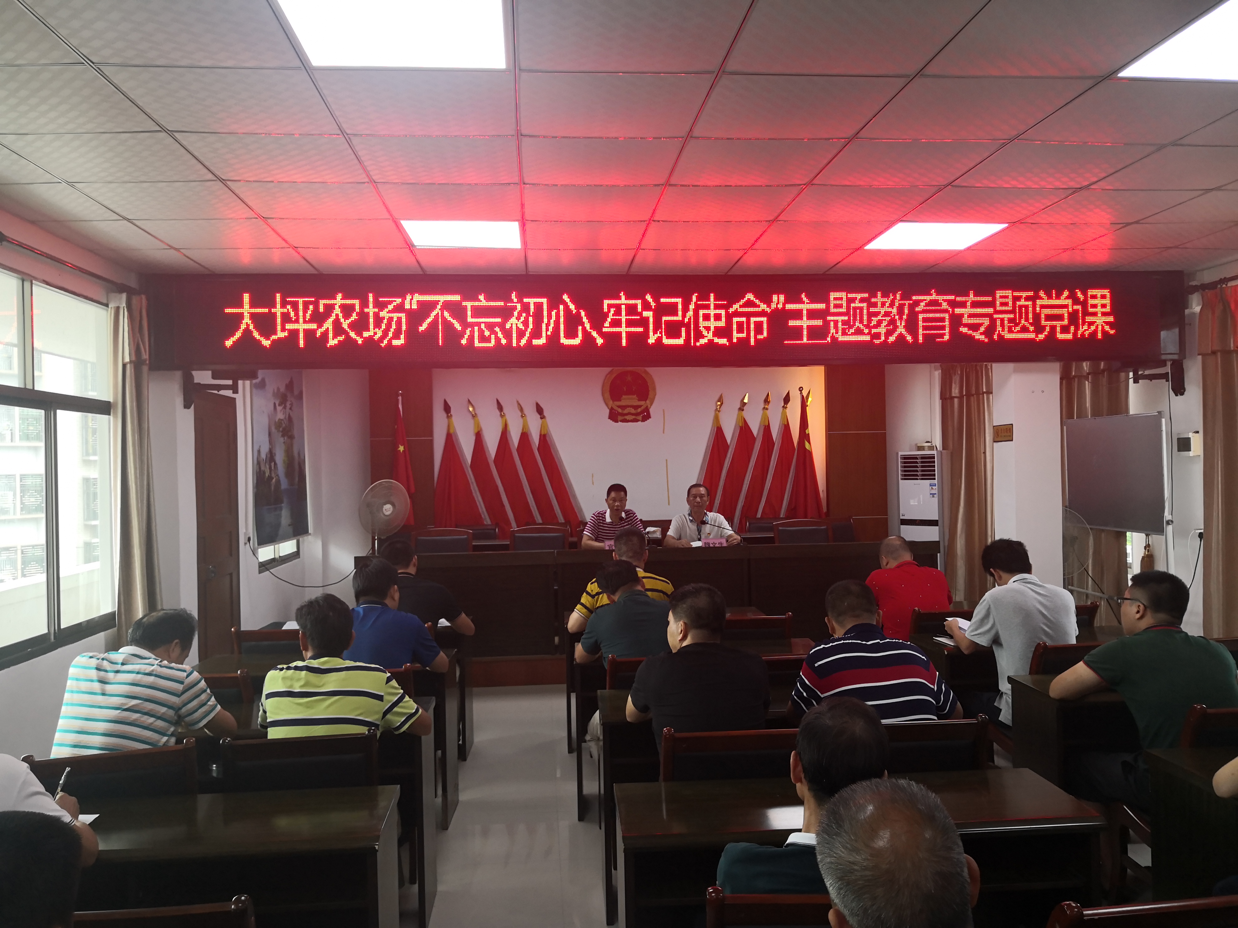 揭陽農(nóng)墾局人事科副科長鐘慶成,場領(lǐng)導班子成員,場全體機關(guān)干部,場各黨支部書記等40多人參加此次專題黨課。