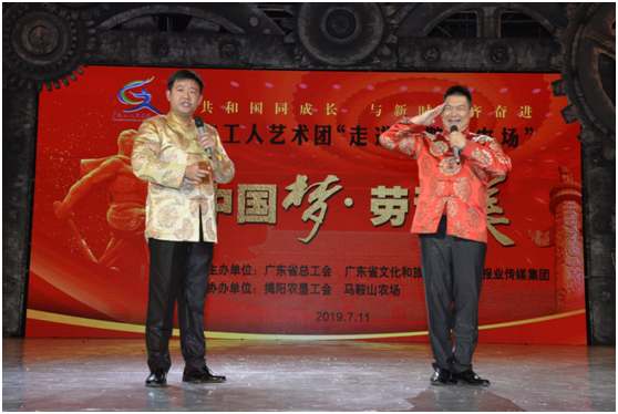 7月11日晚, “中國夢·勞動美”廣東工人藝術(shù)團送文藝進馬鞍山農(nóng)場成功舉行,為揭陽墾區(qū)一線職工、當(dāng)?shù)厝罕姭I上一場精彩紛呈的文藝盛宴。