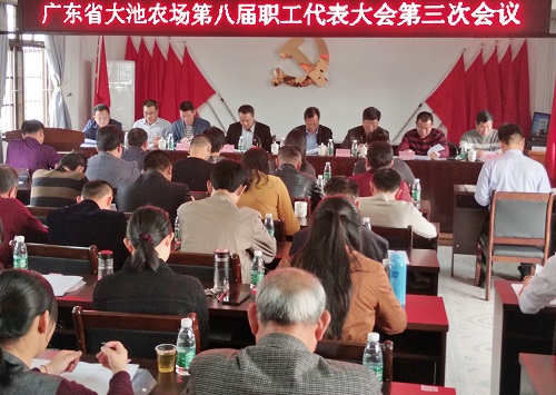 3月19日上午,大池農(nóng)場(chǎng)召開(kāi)第八屆職工代表大會(huì)第三次會(huì)議。揭陽(yáng)農(nóng)墾集團(tuán)公司(農(nóng)墾局)黨組成員、副總經(jīng)理(副局長(zhǎng))王錦文,工會(huì)副主席蔡旭平等領(lǐng)導(dǎo)應(yīng)邀出席,會(huì)議由大池農(nóng)場(chǎng)黨委委員、副場(chǎng)長(zhǎng)、工會(huì)主席林春云主持。場(chǎng)全體職工代表共39人參加會(huì)議。