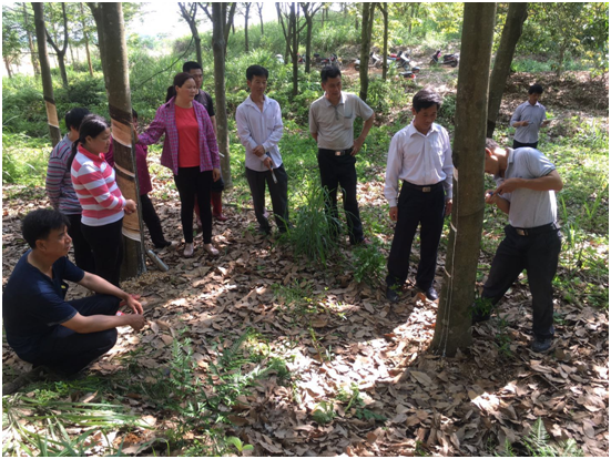 此次培訓(xùn)采取理論與實(shí)際操作相結(jié)合的方式,農(nóng)場割膠總輔導(dǎo)員許安樂針對(duì)橡膠開割樹的管理和常見病害治療等方面開展詳細(xì)的講解,到橡膠園開展磨刀技能和割膠技術(shù)現(xiàn)場指導(dǎo),對(duì)學(xué)員在割膠操作過程中存在的不規(guī)范動(dòng)作一一予以糾正。通過此次復(fù)訓(xùn),有效提高了職工科學(xué)管理橡膠園的水平,為今年干膠的高產(chǎn)穩(wěn)產(chǎn)奠定了基礎(chǔ)。